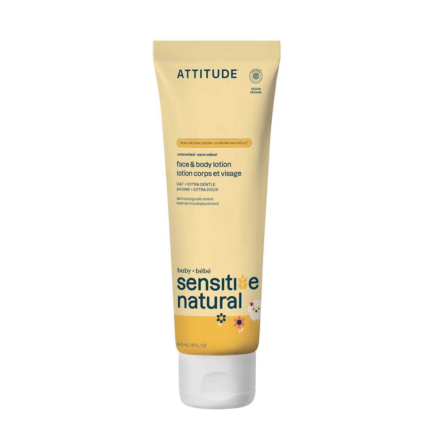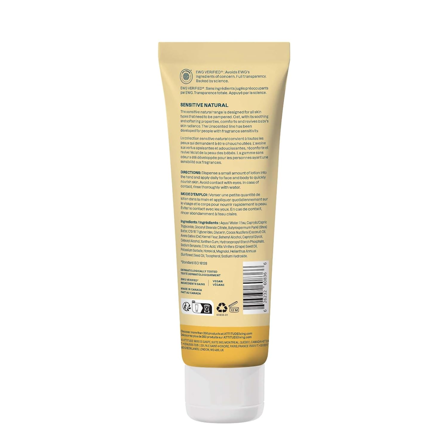ATTITUDE Baby Lotion for Sensitive Skin with Oat, EWG Verified, Plant and Mineral-Based Ingredients, Vegan Personal Care Products, Unscented, 8 Fl Oz
