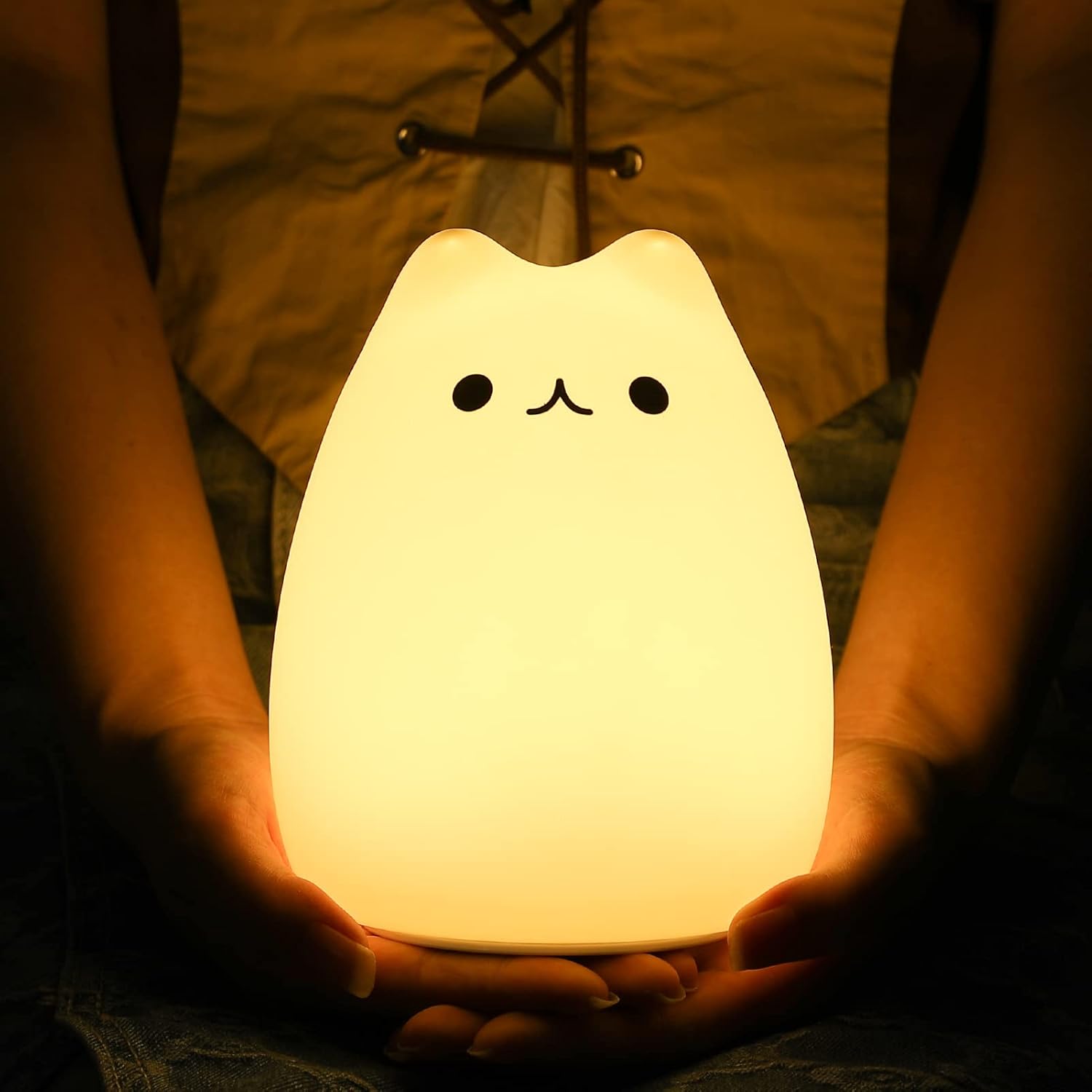 - 【GIFTS FOR ALL AGES 】Ideal gifts for baby, toddlers. This cute night light will be a best gift for children and adult. Lovely cat night light with adorable face and gentle light, it seems to say: when you're tired, I take over. Extremely warm and sweet gift for your loved one.