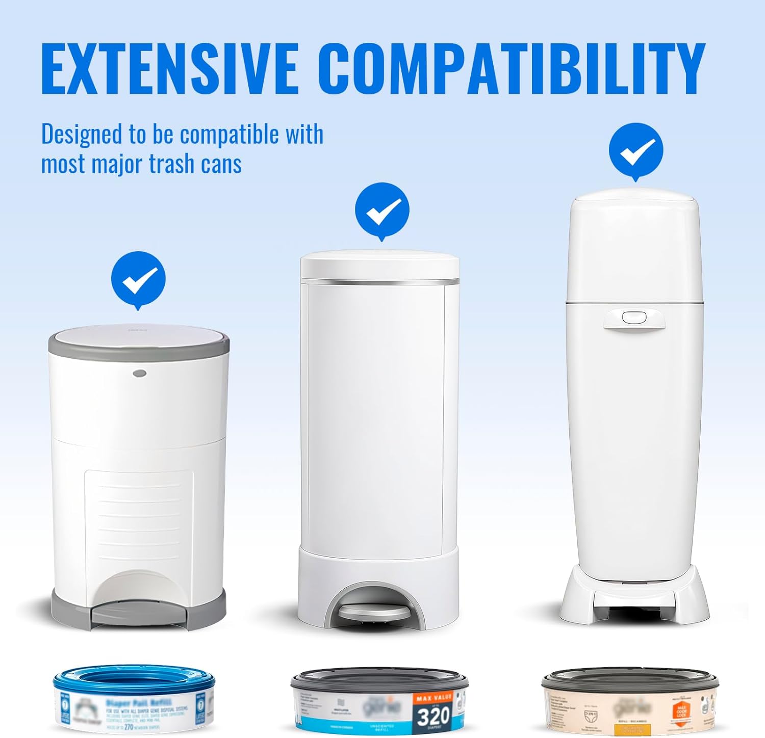 - PERFECTLY COMPATIBLE: Generic Diaper Pail Refills Compatible with Diaper Genie, Munchkin, Expressions Pail, Dekor Plus size diaper pails and AKORD Slim Adult Diaper Disposal System, this produtc is NOT manufactured or sold by Diaper Genie, Munchkin, Expressions PailDekor or Akord.