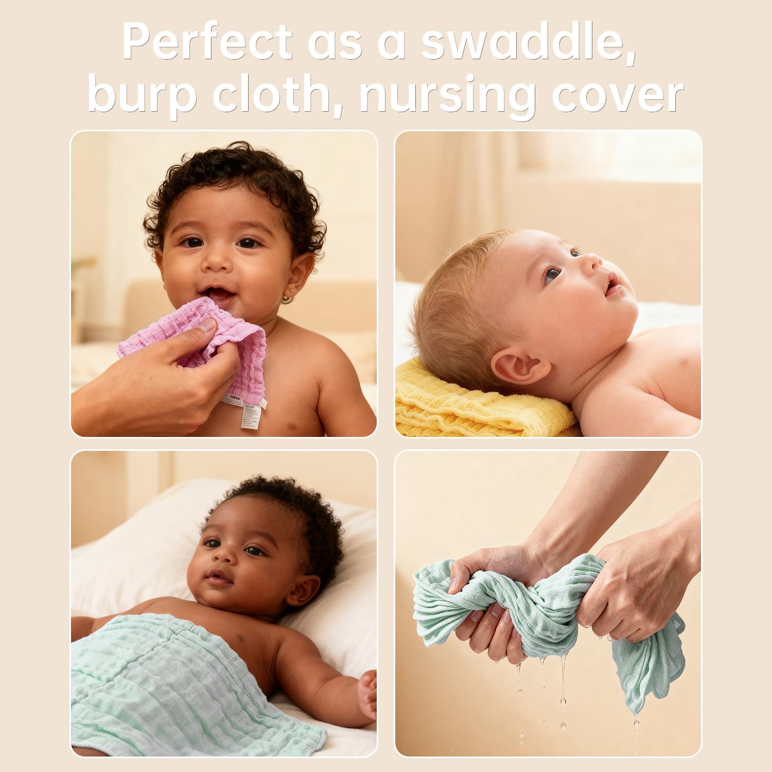 - Highly Absorbent: Lightweight and breathable, it quickly absorbs moisture, ideal for bath time, spit-ups, or gentle cleaning.