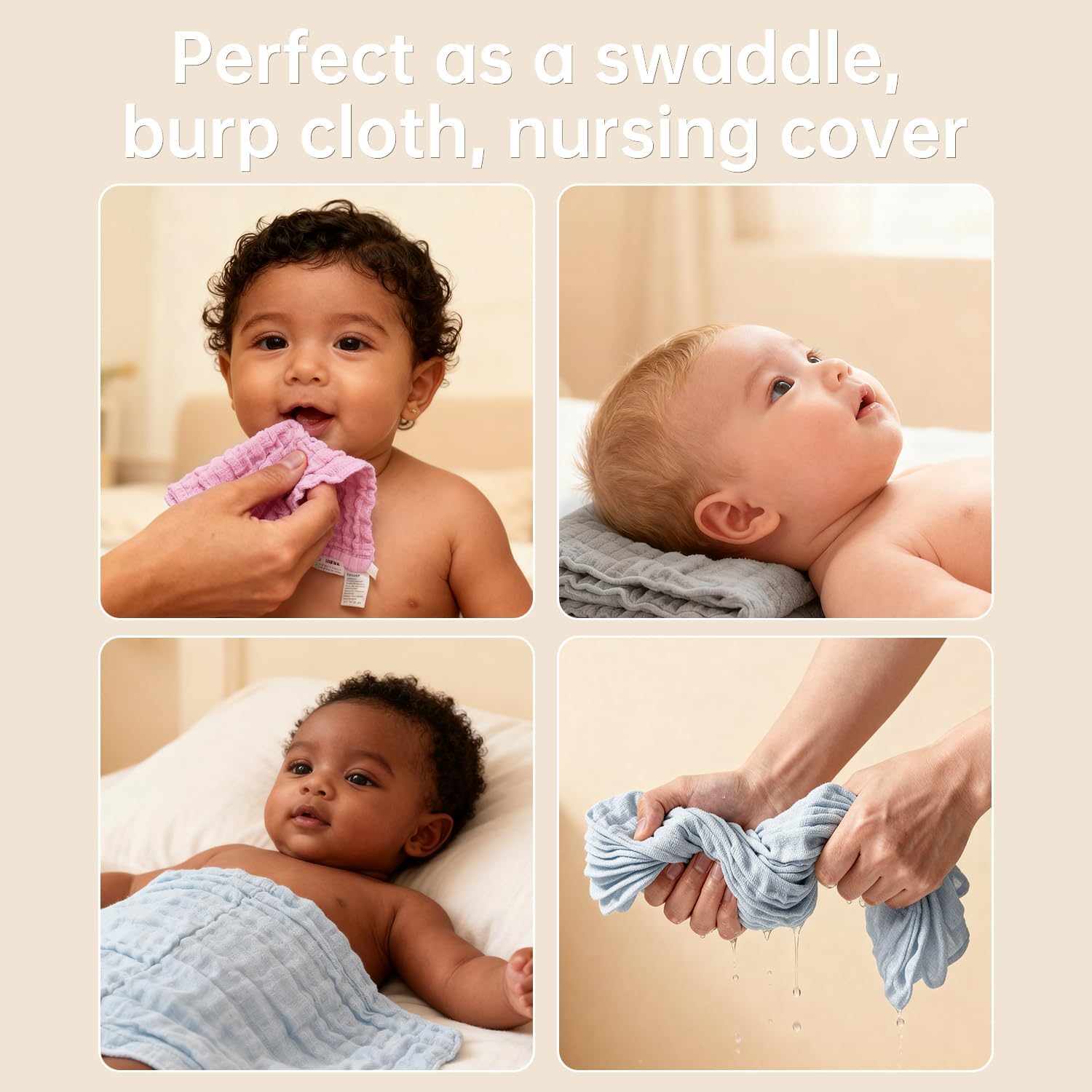 - Highly Absorbent: Lightweight and breathable, it quickly absorbs moisture, ideal for bath time, spit-ups, or gentle cleaning.