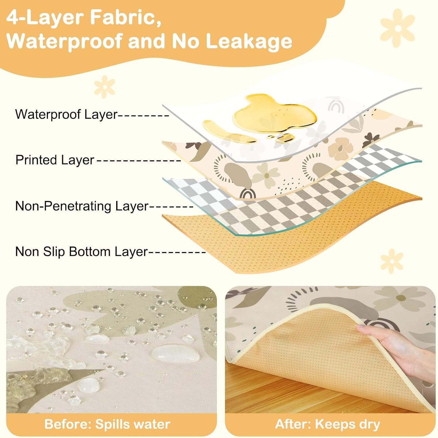 - Materials: The splat mat features a four-layer different fabric, the surface layer is a waterproof layer, the bottom layer is an non slip bottom layer, and the middle layer is a pattern and non-penetrating layer, keep the home clean and the floor dry