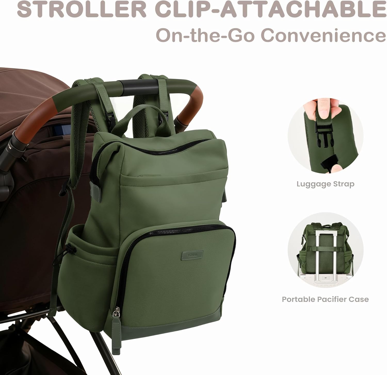 VONAL Neoprene Diaper Bag Backpack with Changing Pad, 33L Large Capacity Neoprene Backpack Baby Diaper Bag with Insulated Pockets, Travel Diaper Backpack Baby with 12 Pockets for Mom & Dad, Green