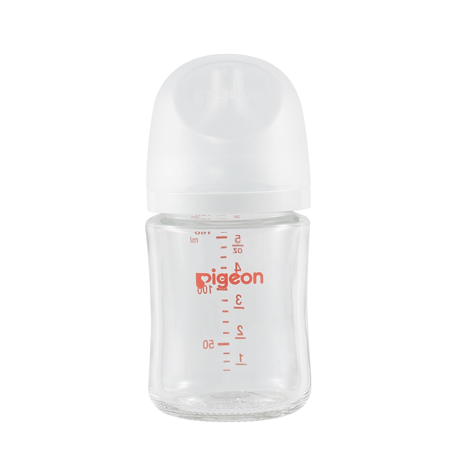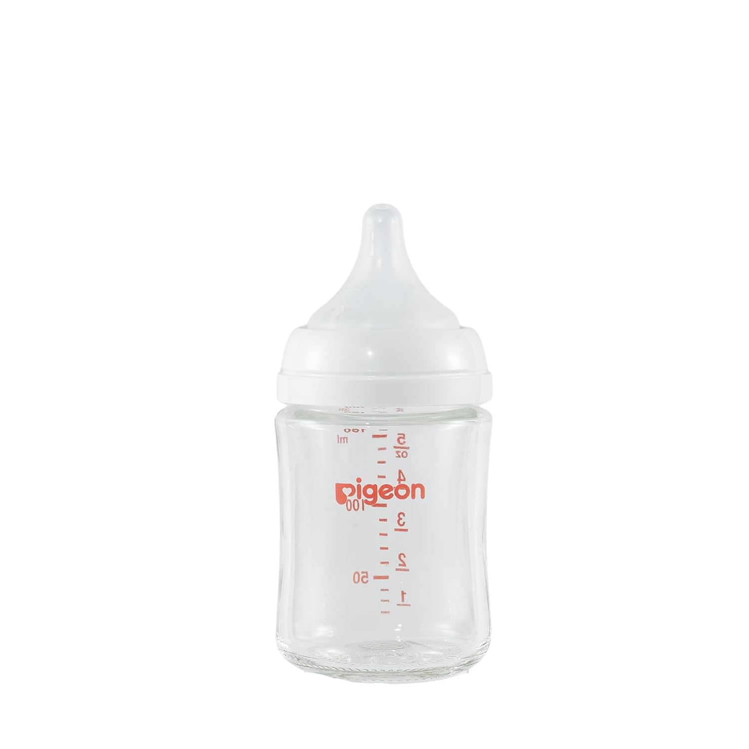Pigeon Glass Nursing Bottle Wide Neck, Nurture & Nest, Anti-Colic, Streamlined Body, Natural Feel, Easy to Clean, Heat-Resistant, 5.4 Oz (Pack of 3), Includes 3pcs Stage 1 Nipples (0m+)