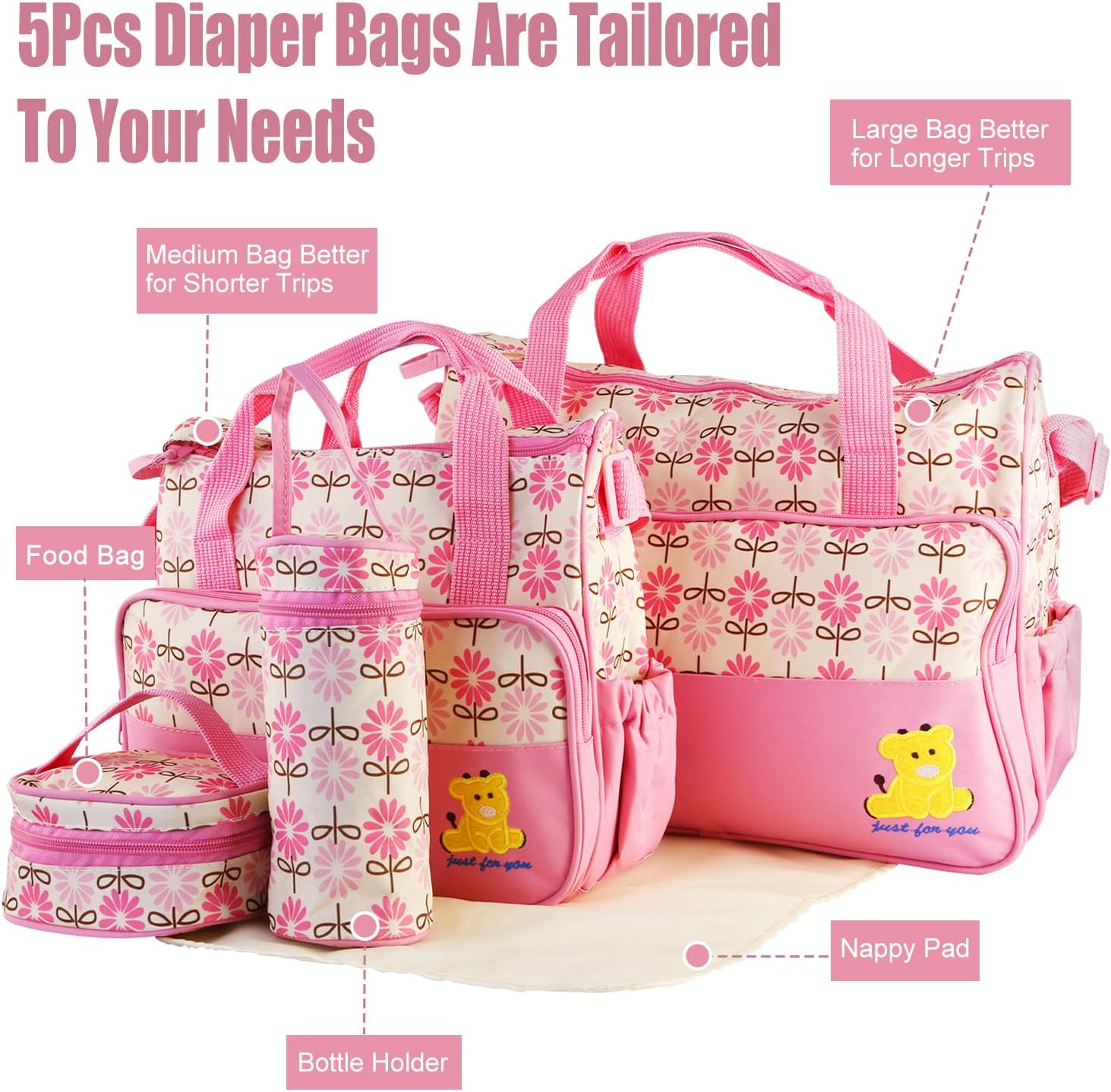 5PCS Baby Diaper Bag Set, Large Baby Doll Diaper Backpack