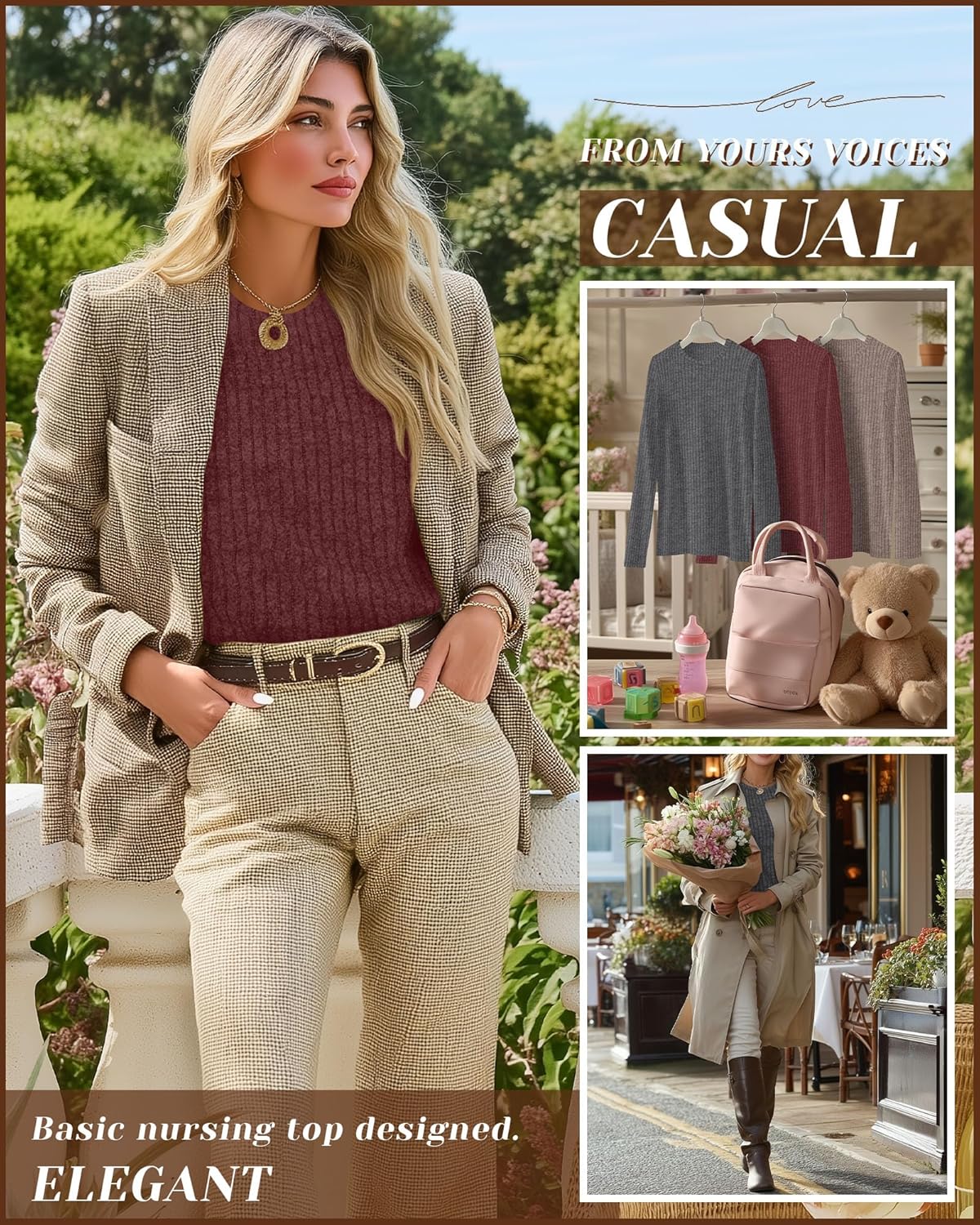 • Lightweight and Soft Fabric: The nursing shirts for women are made of 60% polyester, 35% rayon and 5% spandex, so comfortable, with a thin ribbed fabric that is good for wearing indoors alone, also for layering to keep warm in fall or winter without bulk