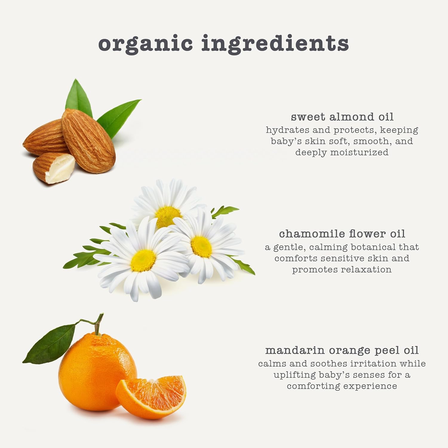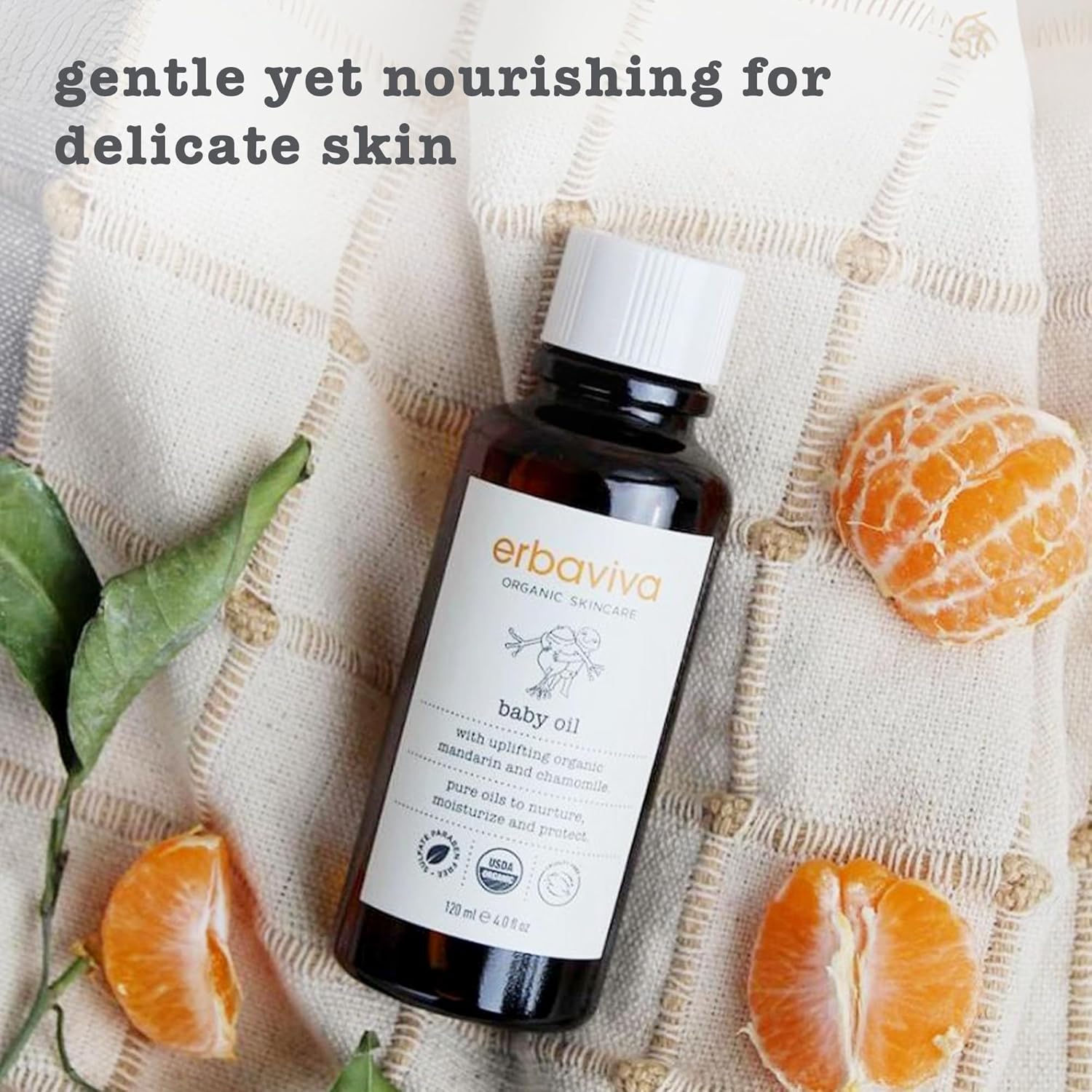 - Infused with essential oils - our nourishing oil for babies is also instilled with the sweet citrus scent of organic mandarin essential oil, for balancing skin and brightening baby’s mood