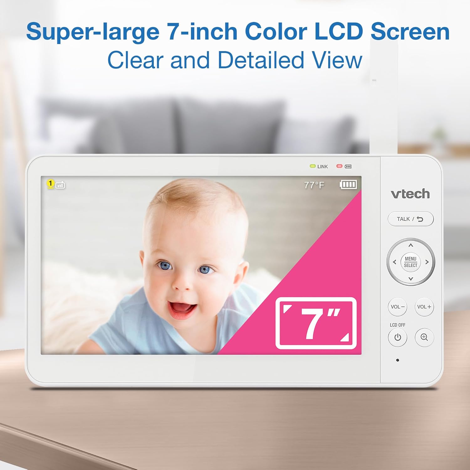 - [7-INCH COLOR LCD SCREEN] Get a clear, full view of your little one with the large 7-inch color LCD screen on the parent unit. See and hear every movement in real time, so you never miss a moment and always feel connected.