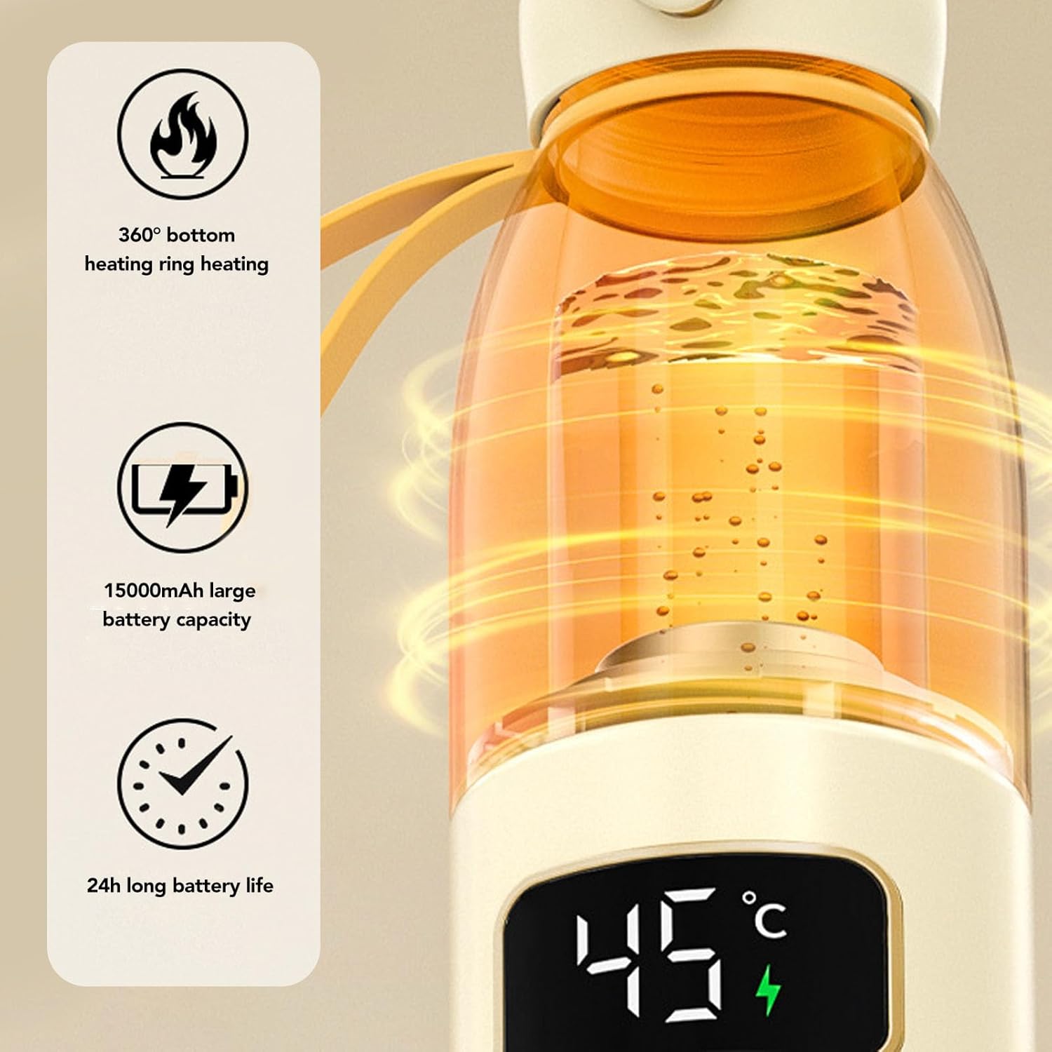 Portable Milk Kettle, 450ml Portable Bottle Warmer for Travel, Fast Heating Breast Milk and Formula Warmer, Smart Temperature Control, Electric Kettle for Car