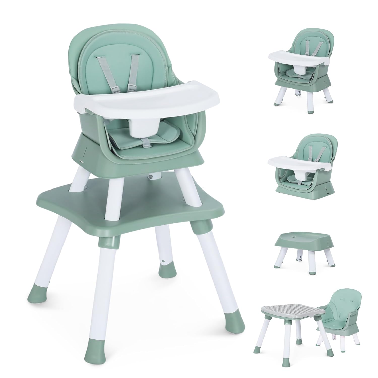 8 in 1 Baby Highchair, Convertible High Chair for Babies and Toddlers, Booster Seat w/5-Point Safety Belt, Toddler Building Block Table, Dishwasher Safe Tray, No Tool Install, Green