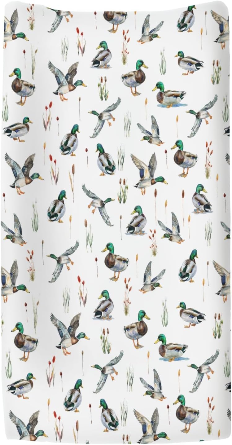 Watercolor Mallard Ducks Changing Pad Covers for Baby Girl Boy Duck Hunting Fitted Change Table Cover Mats Wild Ducks Birds Soft Diaper Changing Table Sheets 32''×16''