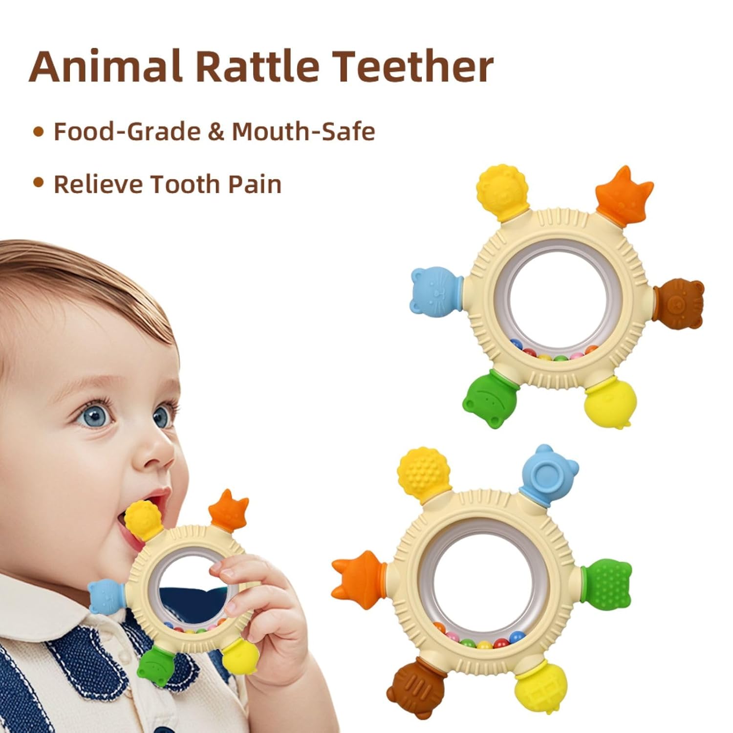 Baby Teething Toys Teething Rings Silicone Teethers for Babies 6-12 Months Baby Rattles & Plush Rings Sensory Toys for Soothing Sore Gums for Newborn Infant Essentials (Animals)